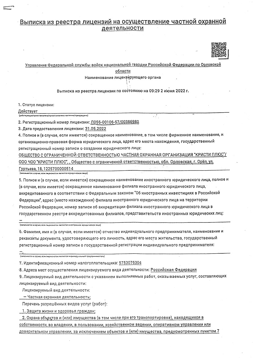 ЧАСТНАЯ ОХРАННАЯ ОРГАНИЗАЦИЯ «КРИСТИ ПЛЮС»